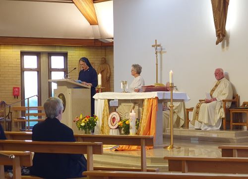 On 6th October 2023, the Province of Rosalie Rendu welcomed Sr Anne Redmond as Councillor to its Provincial Team. The installation ceremony took place during a Mass held in the Sacred Heart Parish, Mill Hill. Sr Julie Kubersak DC, Assistant General, had travelled from the Mother House, Paris to initiate Sr Anne into her new role. It was a truly joyful occasion with our Sisters in Australia joining us via livestream. Our Vincentian confreres – Fr Paul Roche CM and Fr Ray Armstong CM concelebrated Mass and joined us for a reception back in the Provincial House. We wish Sr Anne every blessing in her future ministry.