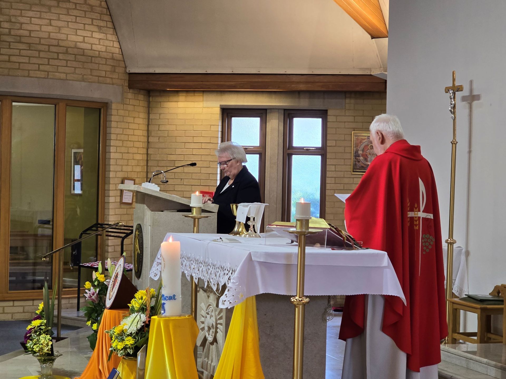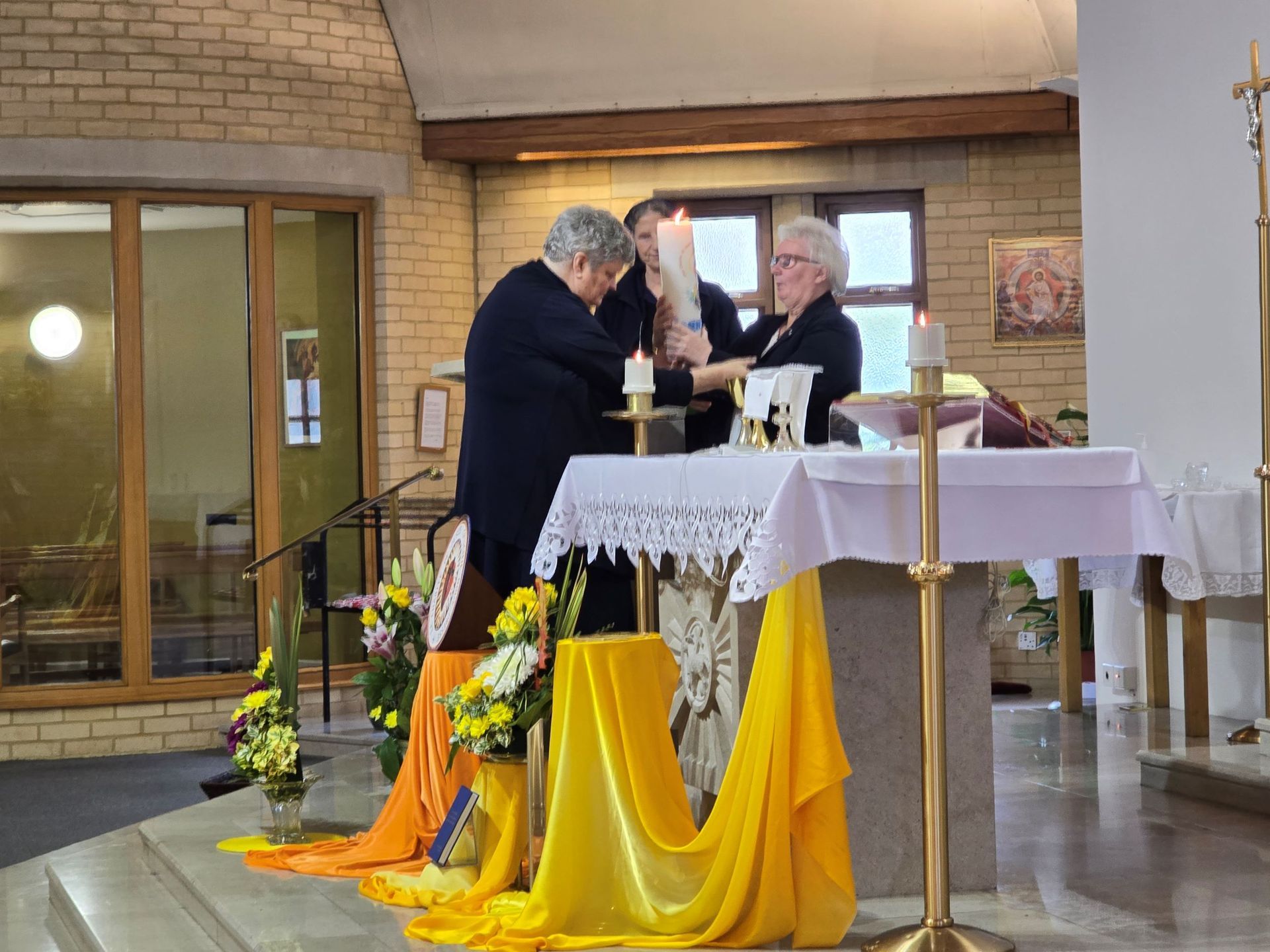 Fr Paul Roche CM, Provincial Director, was the main celebrant at Mass and Sr Julie Kubasak, Assistant General, was in attendance representing Sr Francoise Petit, the Superioress General of the Daughters of Charity of St Vincent de Paul. In a simple yet moving "hand-over" ceremony, Sr Julie thanked Sr Ellen Flynn, the out-going Provincial, for all that she had accomplished in the Province during her nine-year tenure. Sr Julie then welcomed Sr Theresa to the sanctuary and read the patent from the General Council authorising her to take up her new role as Provincial. This hand-over of authority was symbolised by the passing of the Province Candle from Sr Ellen to Sr Theresa. After Mass the Sisters returned to Provincial House for a celebratory dinner. At 6pm we prayed an Evening Prayer (on video) which had been put together by every Sister in the Province. It was a great community experience. Later that evening, those staying overnight in Provincial House came together for a social gathering. It was a wonderful day and we wish Sr Theresa every blessing as she takes up her new appointment.